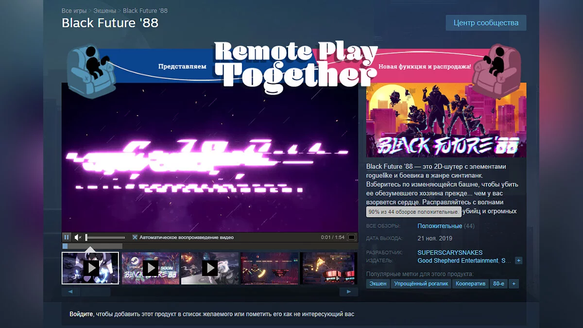 В Steam и на Nintendo Switch вышел двухмерный киберпанк-шутер с элементами Roguelike Black Future '88, который уже получил первый отзывы от игроков — рейтинг 90% на момент написания. Кстати, игра продается со скидкой 10%.
