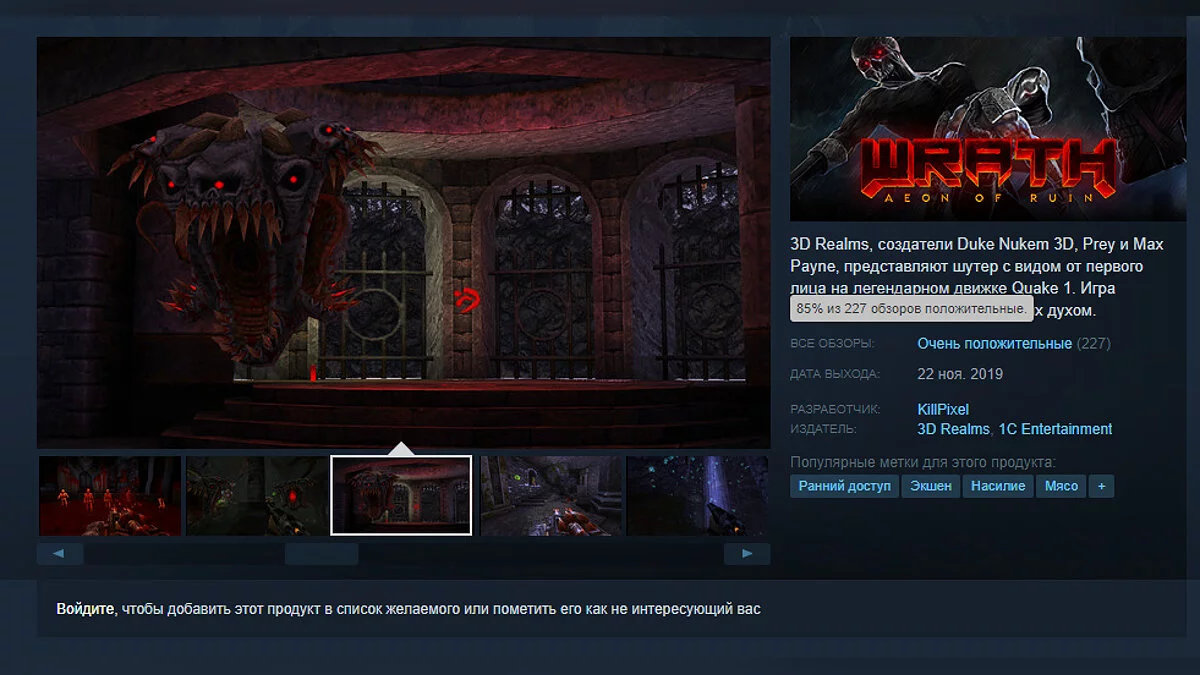 Сейчас WRATH: Aeon of Ruin продается в Steam со скидкой 5% за 521 рубль.