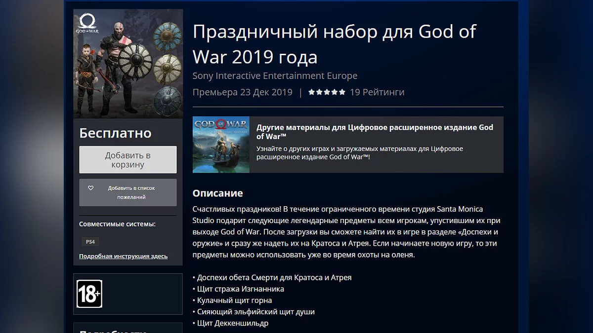 После загрузки дополнения предметы можно будет найти в разделе «Доспехи и оружие» и сразу же надеть их на Кратоса и Атрея. Кстати, сама игра сейчас продается со скидкой 33% в PS Store за 899 рублей (действительно до 18 января).