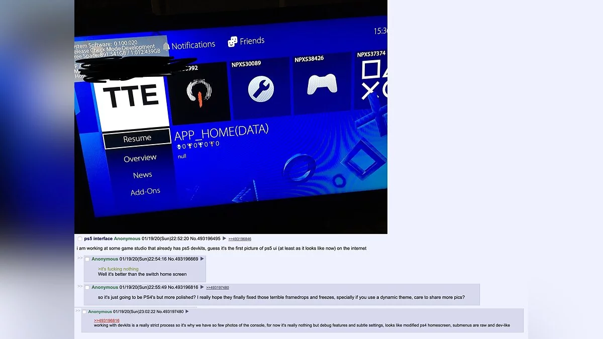 Анонимный пользователь имиджборда 4chan опубликовал фото, на котором якобы изображено главное меню девкита PlayStation 5.