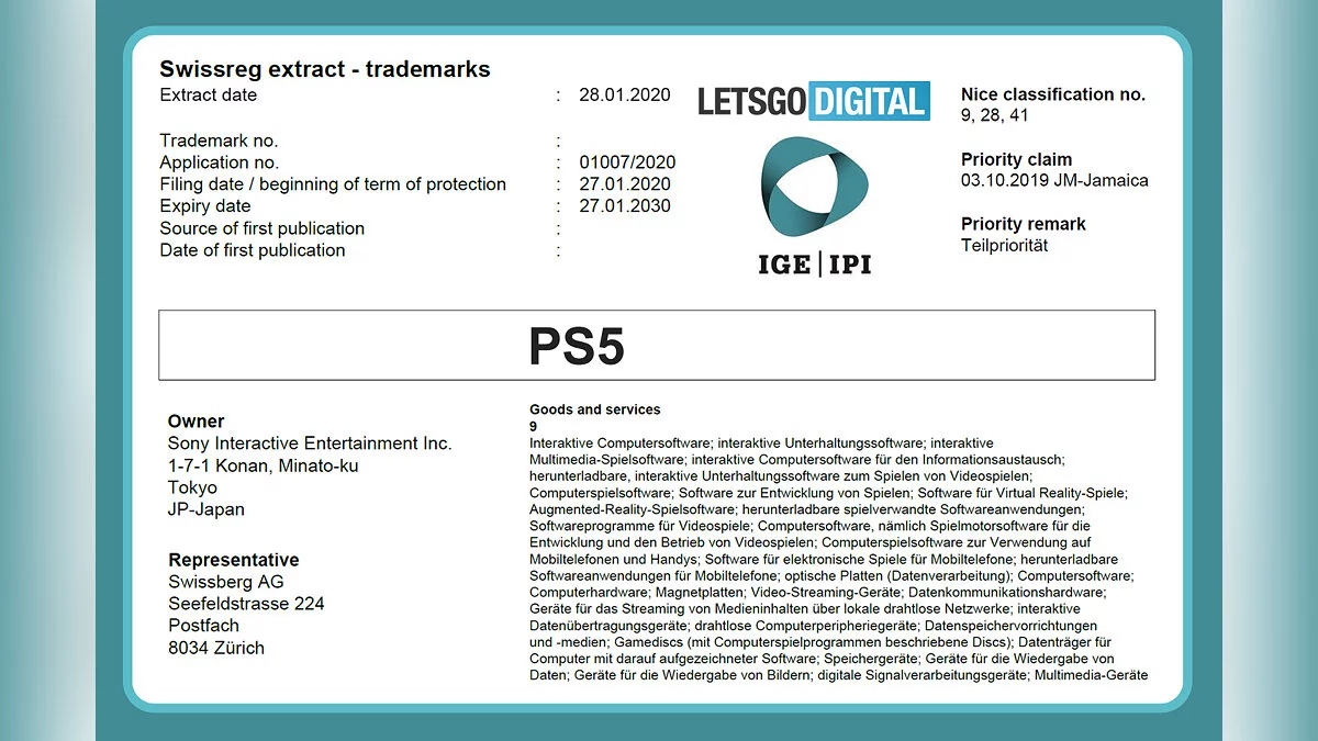 Кажется, анонс PlayStation 5 уже не за горами. Как сообщает LetsGoDigital, компания Sony зарегистрировала товарный знак «PS5» в Швейцарии.