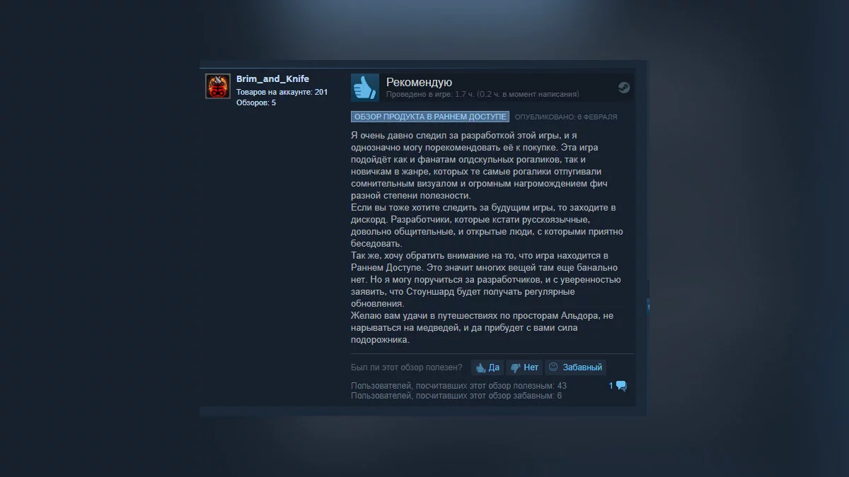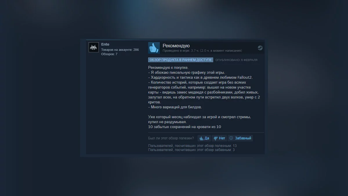 А вот, что о Stoneshard пишут геймеры в Steam: