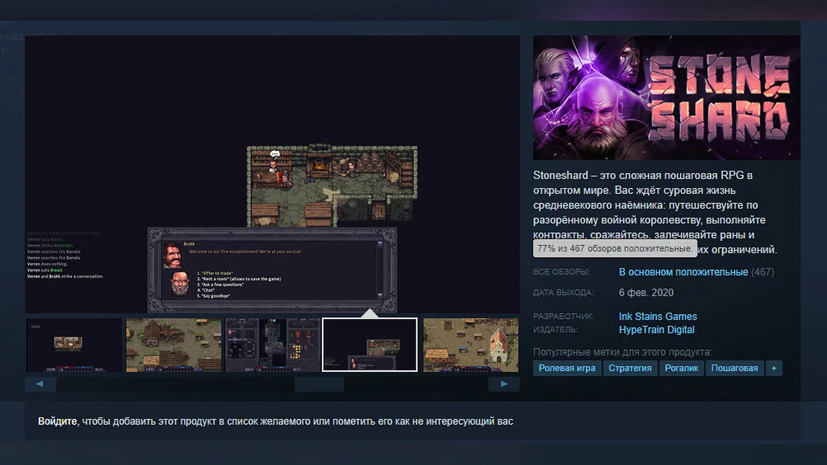 На момент написания новости у Stoneshard 77% положительных отзывов.