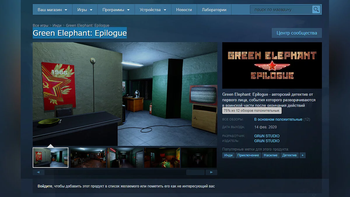 До 21 февраля Green Elephant: Epilogue продается в Steam со скидкой 10% — за 189 рублей.