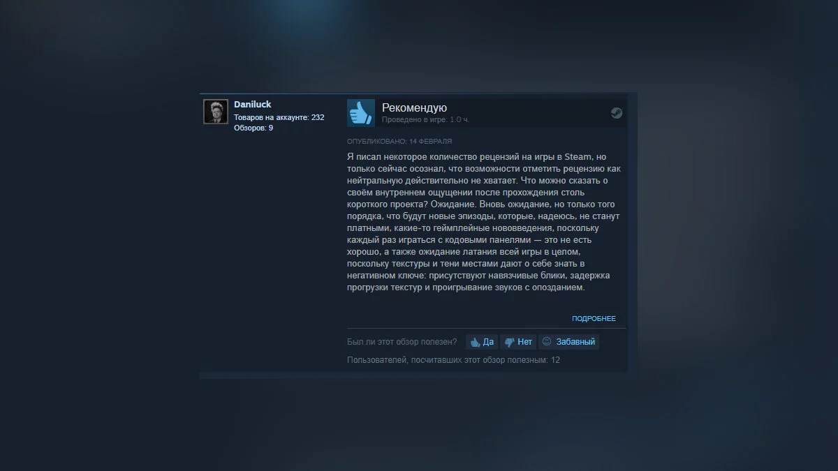 Несмотря на то, что у игры всего 12 отзывов (на момент написания новости), 75% из них положительные.