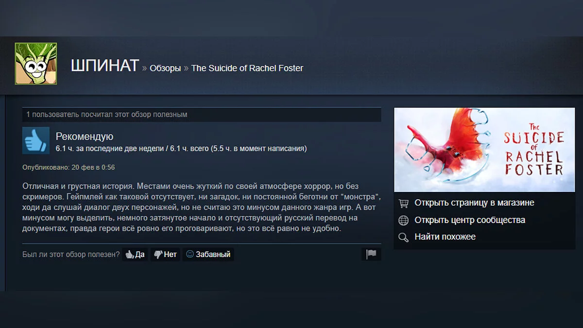 Совсем недавно на ПК вышла приключенческая игра The Suicide of Rachel Foster, которая в первый же день получила от геймеров в Steam очень положительные отзывы.