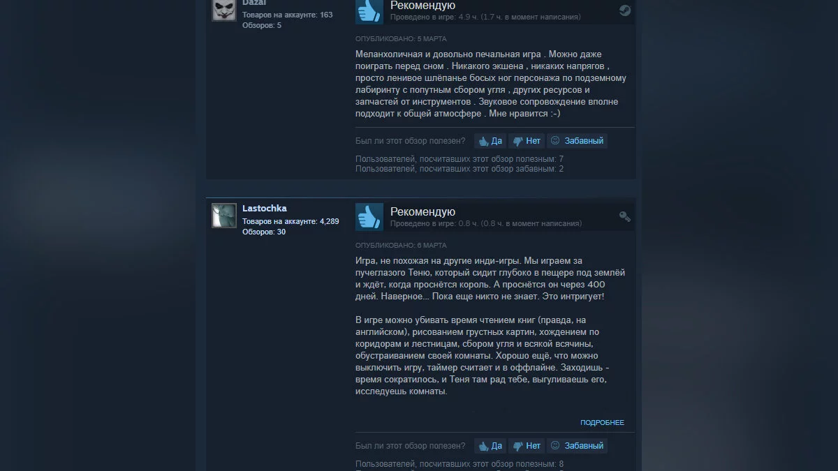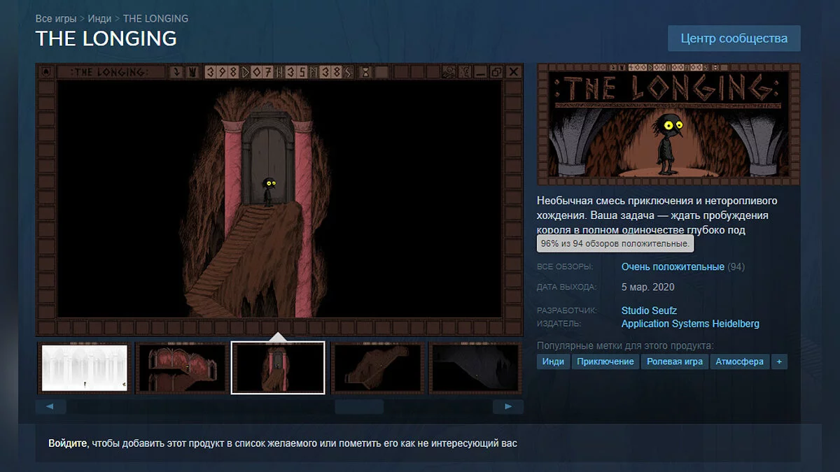 Большинству геймеров, которые уже успели оценить игру, она пришлась по вкусу. На момент написания новости у The Longing 96% положительных отзывов.