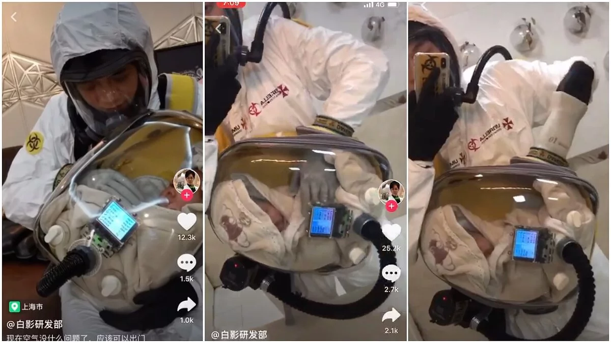 Китаец показал свое устройство в китайской версии Tik-Tok. За основу был взят простой портфель с прозрачной передней частью, к которому приделали фильтр и перчатку, с помощью которой можно потрогать своего ребенка.