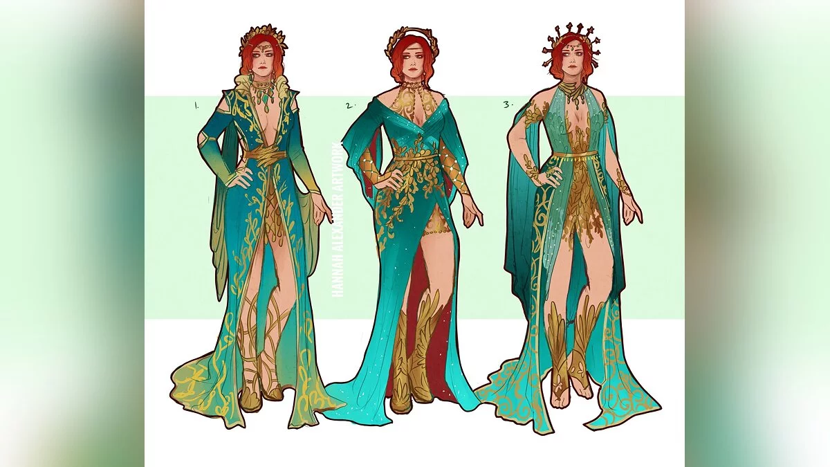 Для Трисс художница представила несколько вариаций ее классического платья из игры, но Йен и Цири получили совершенно новые костюмы: чародейка из Венгерберга традиционно носит только белое с черным, а львенок из Цинтры стал намного обаятельнее.