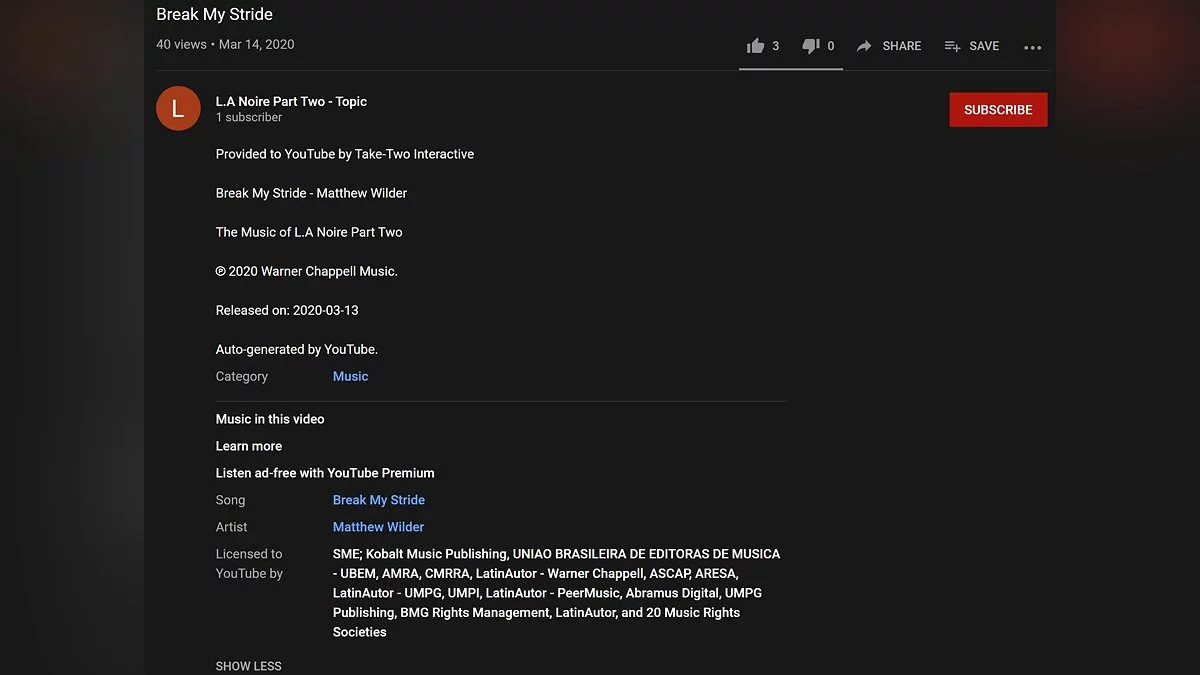 Компания Warner Chapell Music опубликовала трек Break My Stride на канале L.A. Noire: Part Two. Ролик очень быстро удалили, однако на Reddit выложили скриншот его описания. Как всегда, советуем отнестись к этому с максимальным скепсисом.