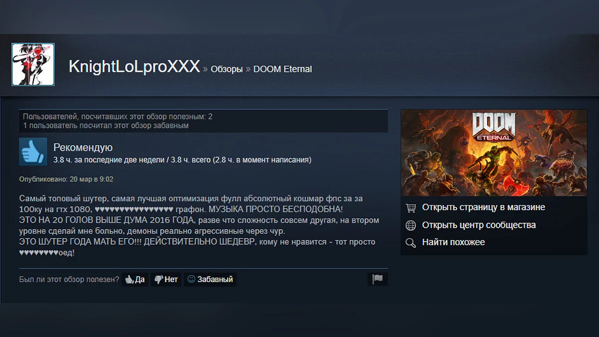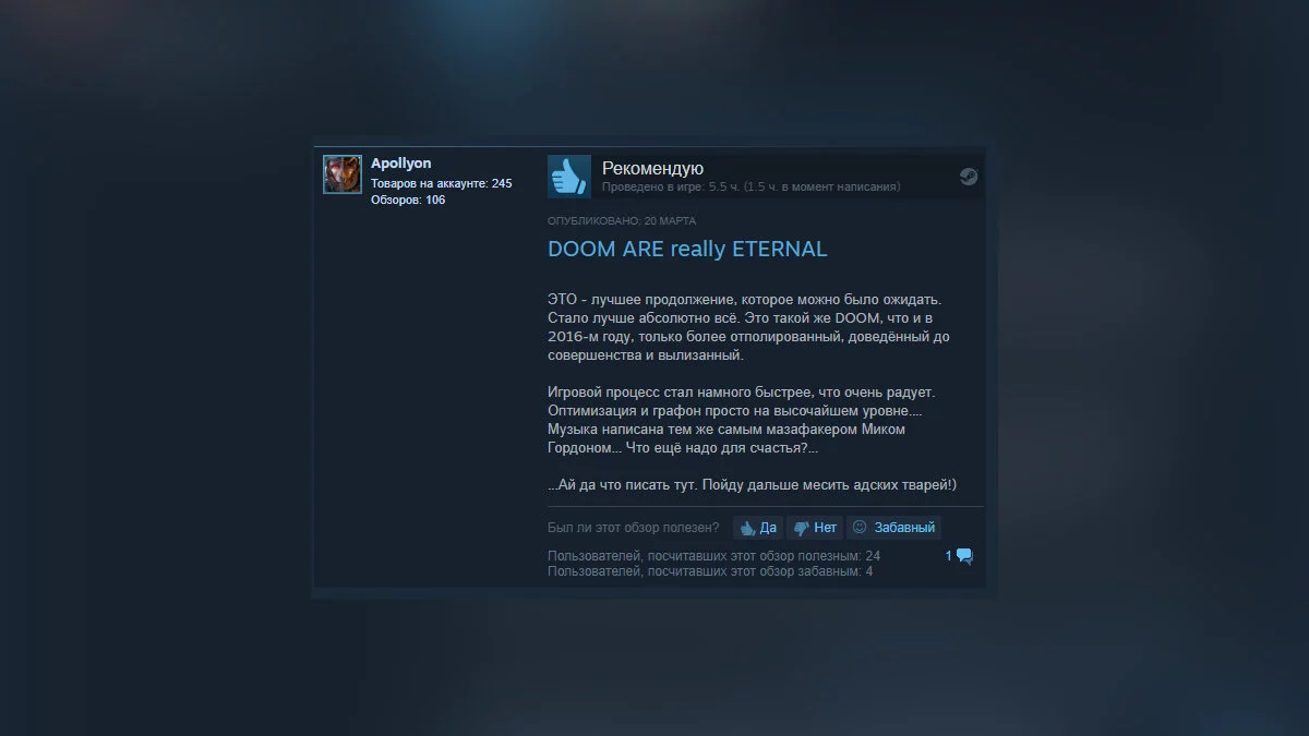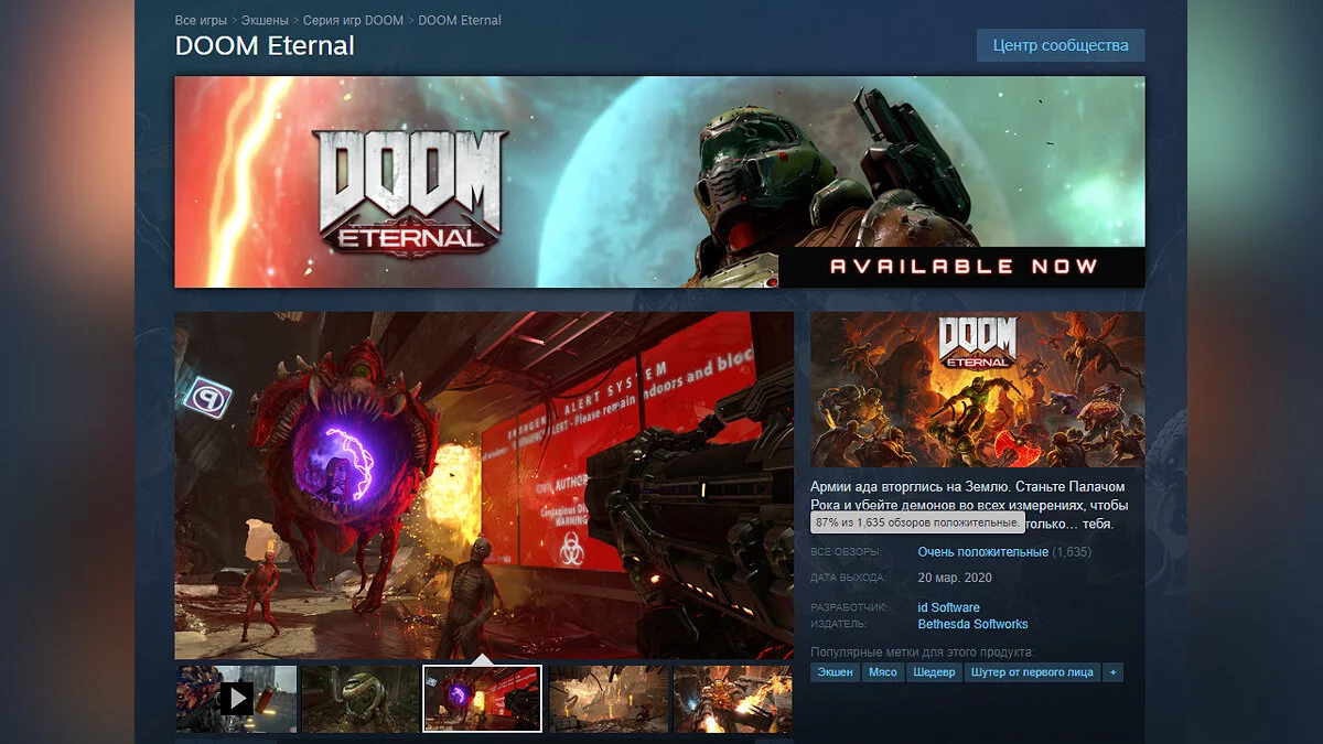 Игровые новости Новости «Лучше, чем секс» и «Самый топовый шутер» — Doom Eternal получила восторженные отзывы в Steam
