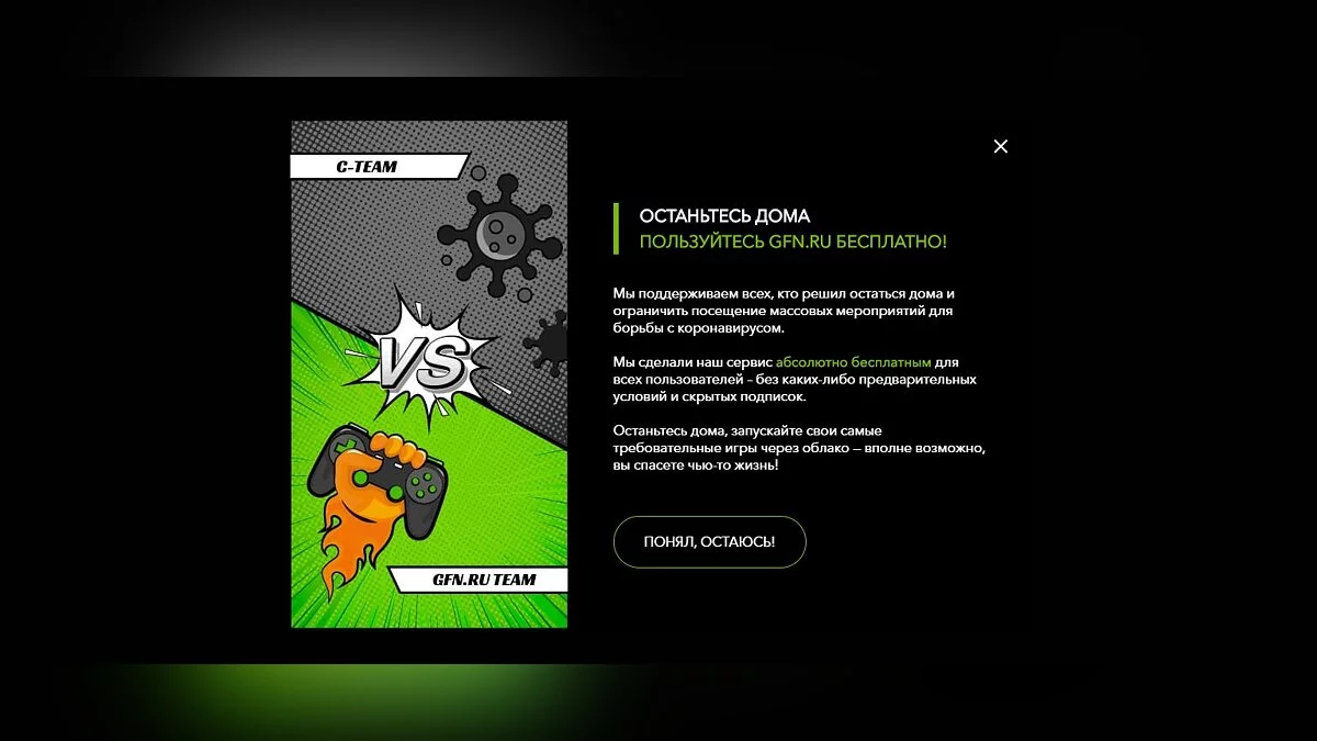 Стриминговый сервис GFN.RU стал бесплатным на месяц
