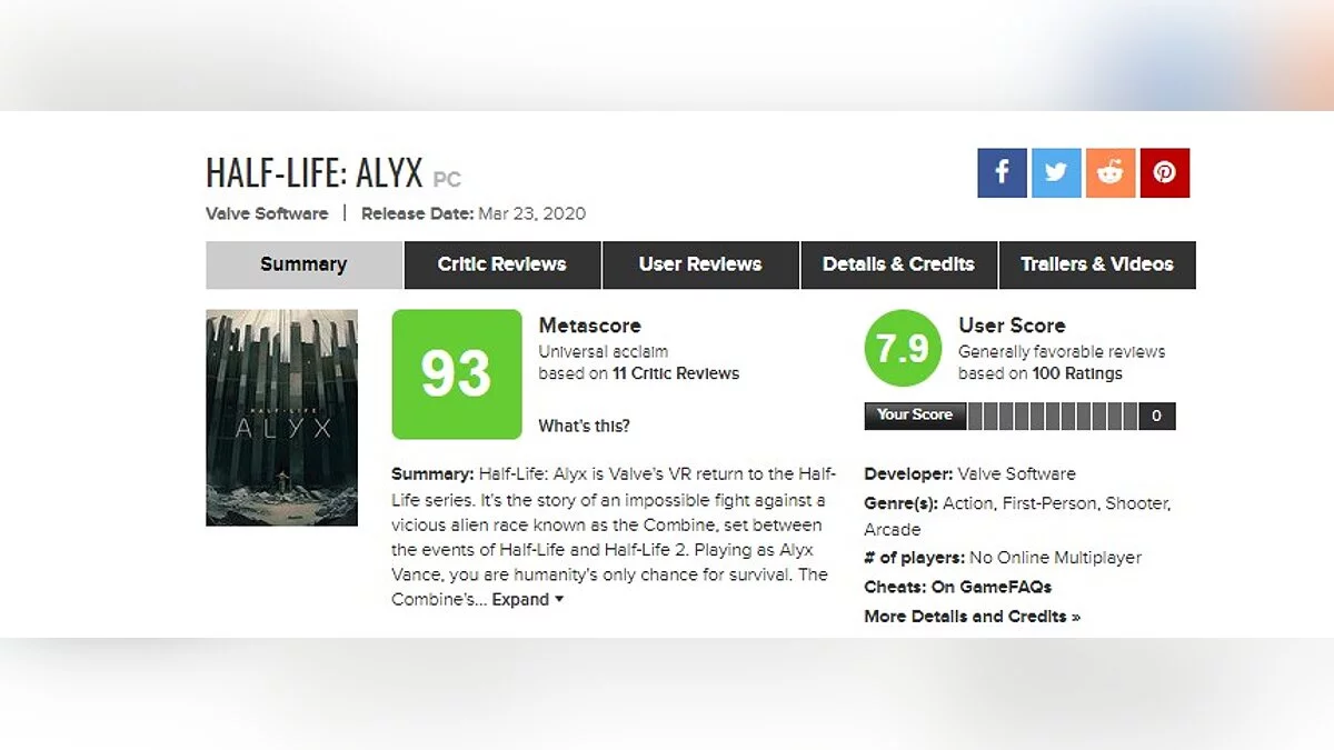 В это трудно поверить, но сегодня наконец-то состоялся релиз Half-Life: Alyx. Спустя некоторое время на Metacritic появились первые оценки VR-шутера.
