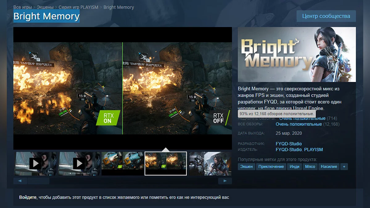 В Steam из раннего доступа вышел динамичный научно-фантастический шутер от первого лица Bright Memory. У игры 93% положительных отзывов, но большая часть из них была оставлена во время раннего доступа.