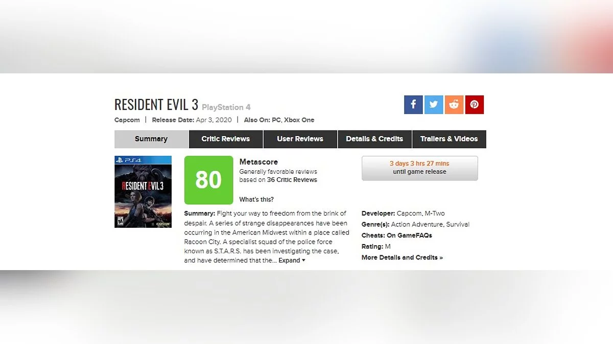 На Metacritic появились первые оценки ремастера Resident Evil 3. Если вкратце — дважды в одну реку у Capcom войти не получилось.