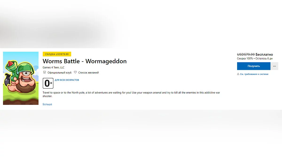 Worms Battle — Wormageddon — игра про червячков, которые сражаются друг с другом на разных картах, включая космос и Северный полюс. Игру можно забрать бесплатно в течение шести дней.