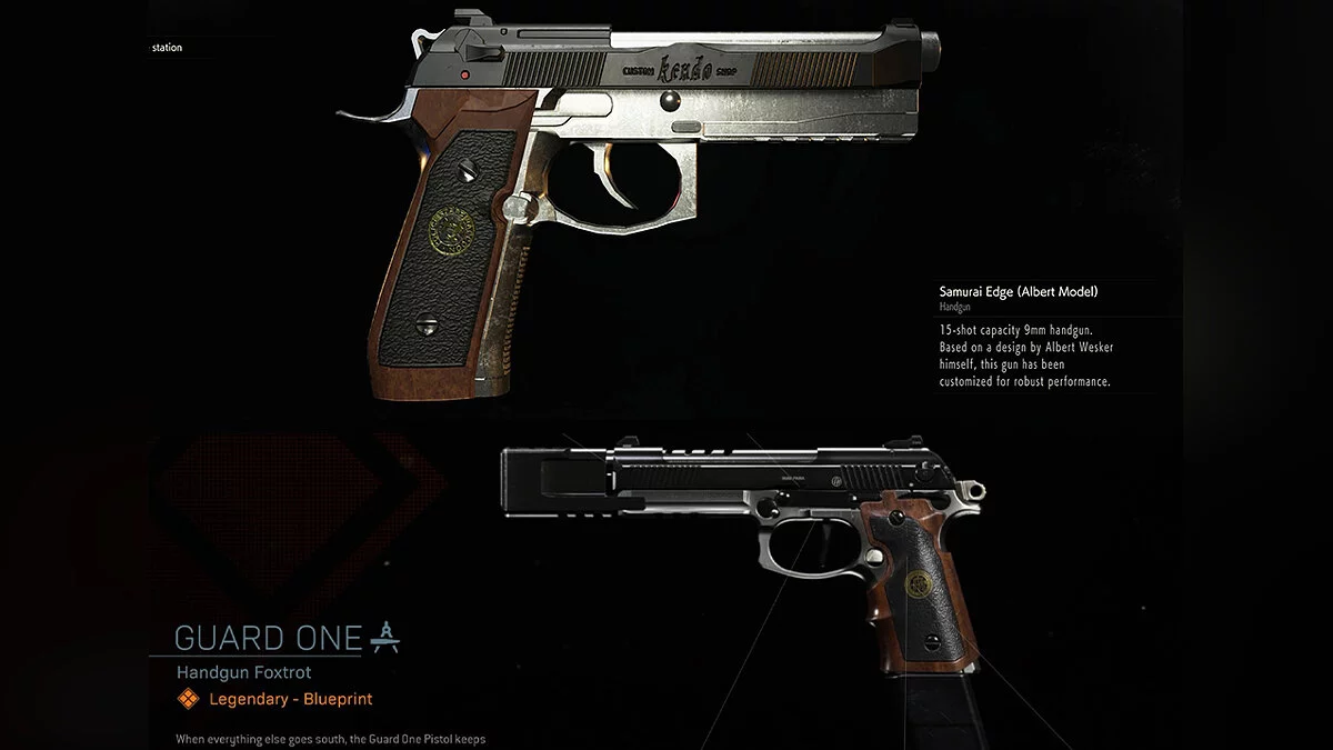 Новый боевой пропуск добавляет в сетевой режим пистолет Renetti, который по сути является переименованной «Береттой». Сам по себе ствол ничем примечательным не выделяется, однако у него есть чертеж Guard One, превращающий Renetti в «Клинок Самурая» — кастомную версию Beretta 92F, которой пользовались члены отряда S.T.A.R.S. и Вескер.