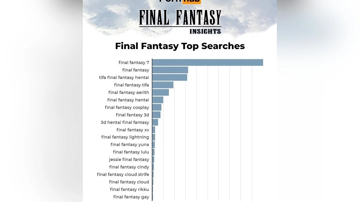 Ремейк Final Fantasy 7 — игра с чертовки красивыми девушками, поэтому неудивительно, что многие фанаты принялись искать знакомых персонажей на порносайтах. Как сообщает Pornhub, в первые дни релиза игра показала впечатляющее количество запросов среди любителей «клубнички».