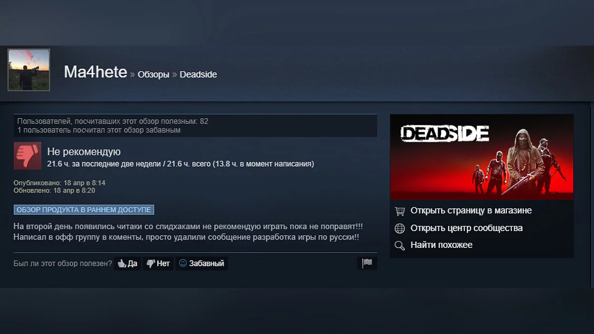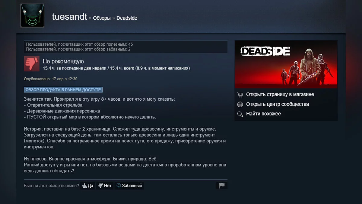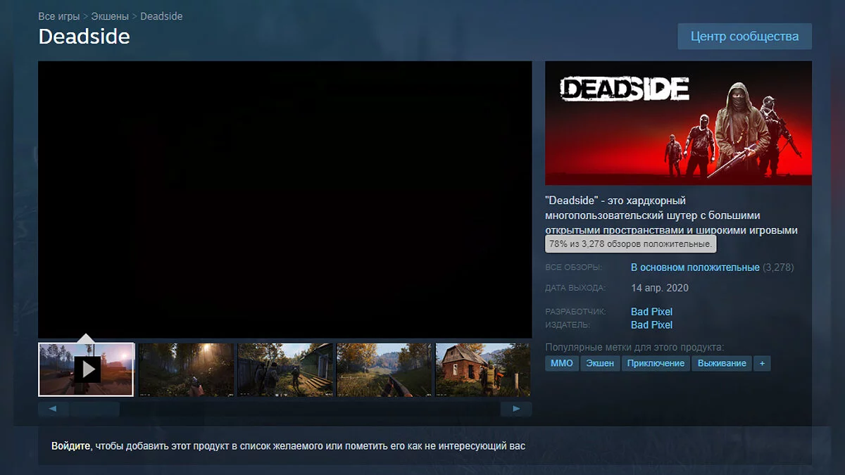 Не так давно в раннем доступе Steam вышел многопользовательский хардкорный шутер на выживание Deadside от российской студии Bad Pixel. За несколько дней игра получила около 2,5 тыс положительных отзывов (ее рейтинг на момент написания новости составляет 78%).