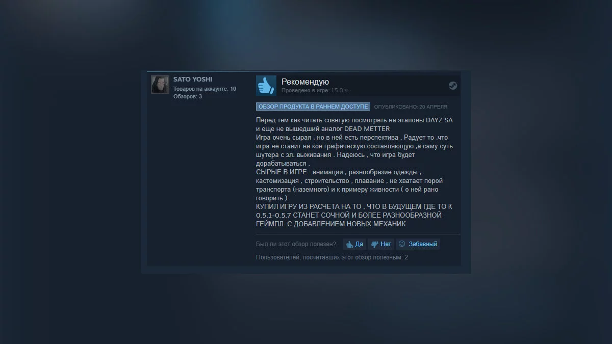 Несмотря на отсутствие зомби, многие игроки в Steam сравнивают игру с DayZ. Некоторые геймеры также нашли сходства с Rust.