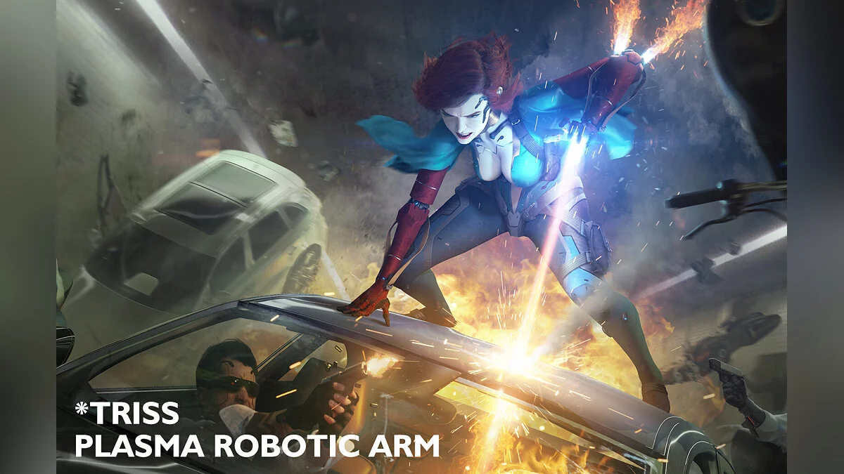 В мире будущего милая чародейка обзавелась кибернетическими конечностями, которые помогают ей использовать «заклинания». Ну, и облегающий, костюм, куда же без него.