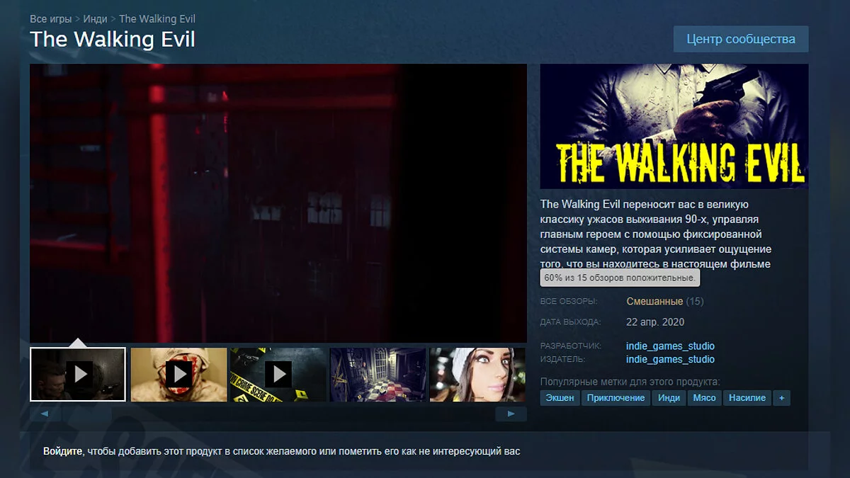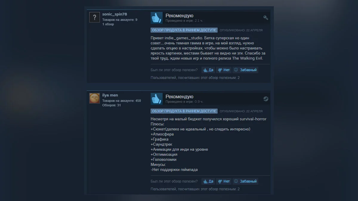 Вчера в раннем доступе Steam вышла российская игра под названием The Walking Evil, в которой, по словам разработчика, геймеров ждет атмосфера классики ужасов на выживание из 90-х. На момент написания новости игра получила смешанные отзывы от игроков (на основе 15 обзоров).
