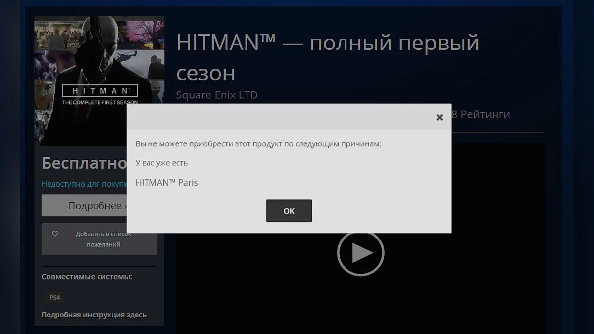 Однако забрать игру все же можно. Для этого нужно добавить Hitman на другой свой аккаунт PS4, на котором вы не получали DLC к этой игре.