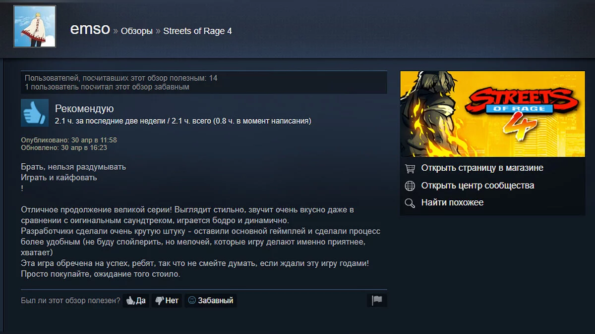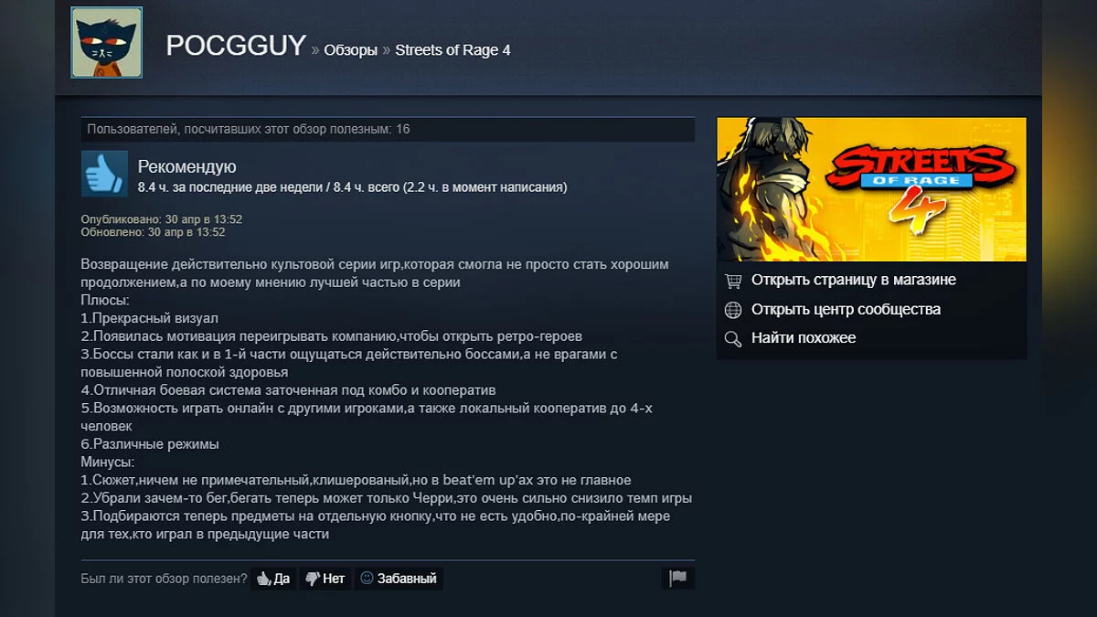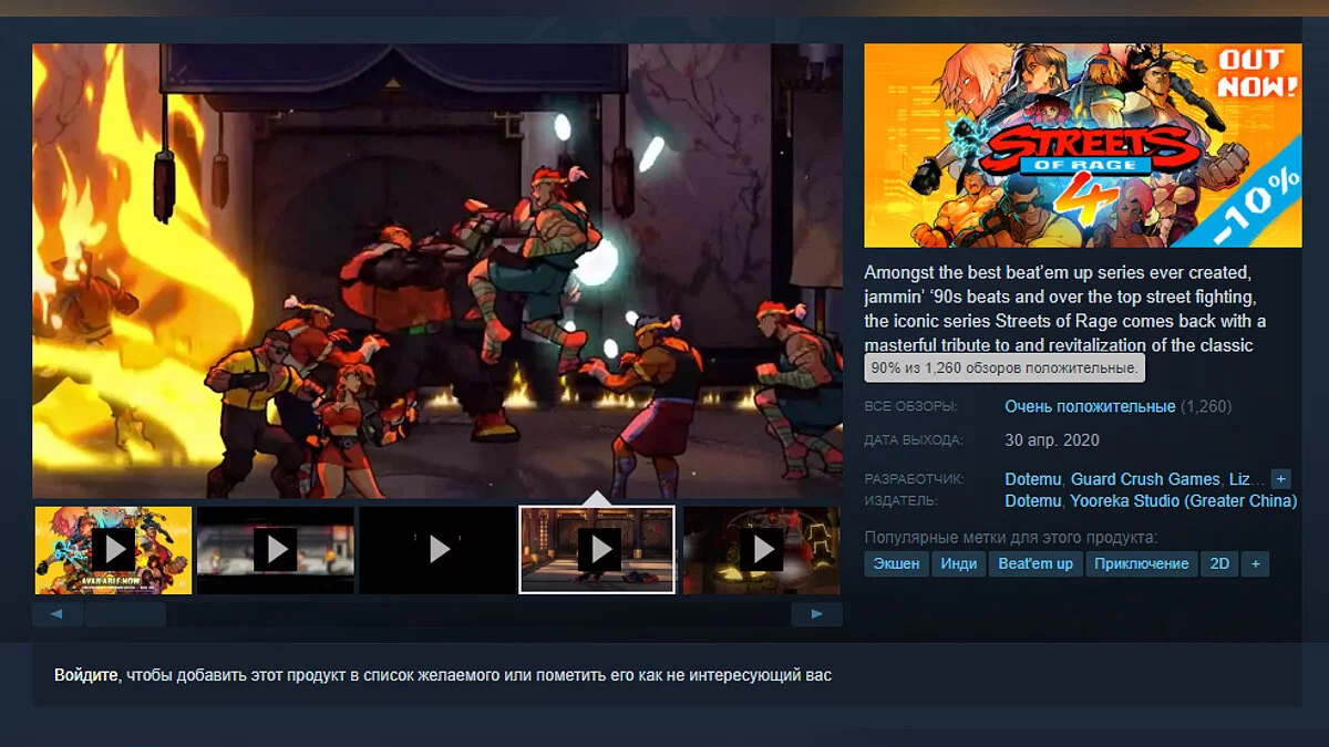 На момент написания новости у Streets of Rage 4 90% положительных отзывов (большее тысячи обзоров).