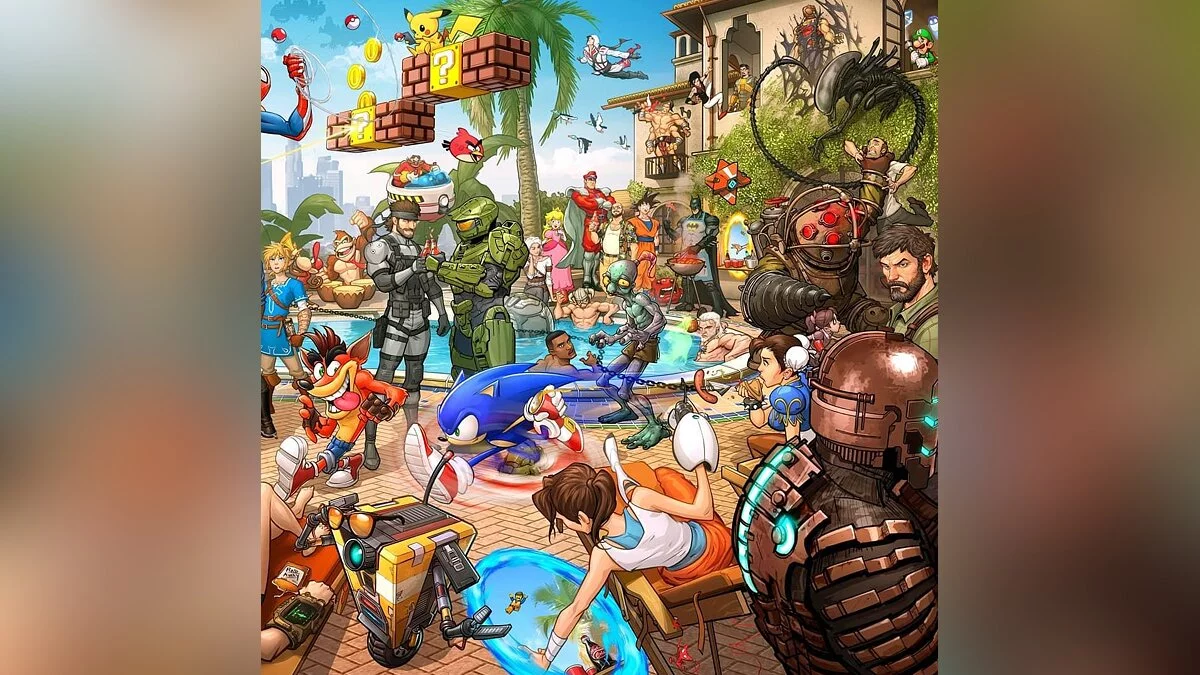 Известный художник Патрик Браун (Patrick Brown) опубликовал потрясающий арт с десятками популярных героев игр в одном кадре.