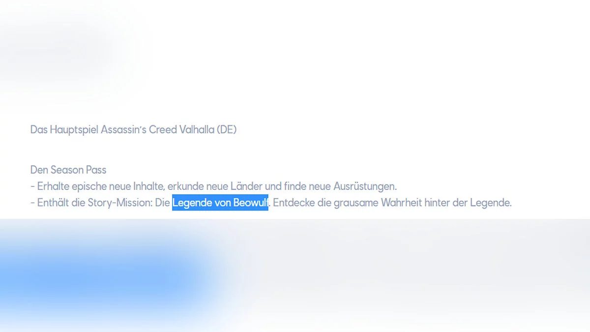 Примечательно, что в российской версии сайта Ubisoft нет упоминаний о Беовульфе. Вместо этого в рубрике «Сезонный пропуск» там написано следующее: