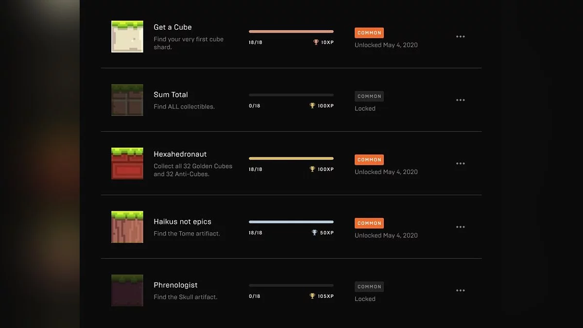 На скриншоте, кстати, указаны достижения из игры Fez, которую в Epic Games Store бесплатно раздавали в августе прошлого года.