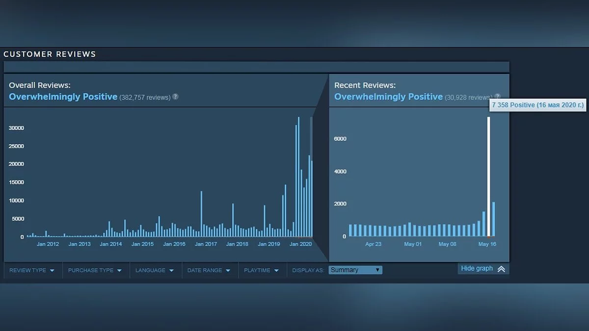 Только за 16 мая игра получила 7358 положительных отзывов: