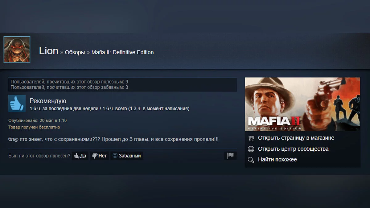 Многие геймеры жалуются на технические проблемы с сохранениями. По их словам, они не могут сохранить свой прогресс, в результате чего после перезапуска или смерти главного героя прохождение приходится начинать сначала. На эту проблему жалуются только обладатели PC-версии Mafia 2: Definitive Edition.
