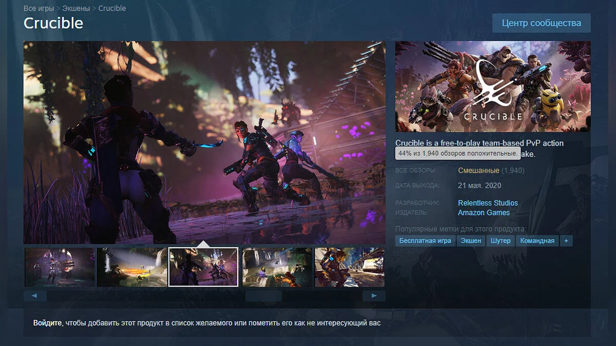 Сегодня в Steam вышел командный сетевой шутер Crucible, издателем которого выступает компания Amazon Games, а разработчиком служит студия Relentless. Игра распространяется по условно-бесплатной модели.