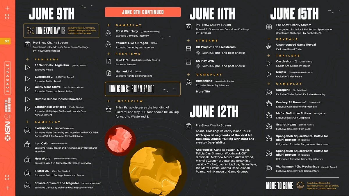 - 15 июня: анонс некой игры, а также геймплей Mafia: Definitive Edition, Scarlet Nexus и ряда других проектов;