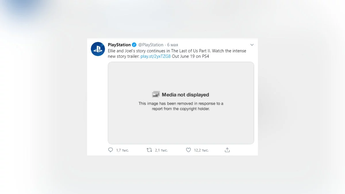 В результате массовой утечки геймплея предстоящего PS4-эксклюзива The Last of Us: Part 2, Sony начала активно бороться с роликами и скриншотами, попавшими в сеть раньше времени. Компания кидает страйки на видео и всяческим образом способствует удалению слитого контента. В итоге ее политика привела к тому, что в официальном твиттере PlayStation пропало изображение к посту о TLOU 2 в связи с требованием от правообладателя, то есть самой Sony.