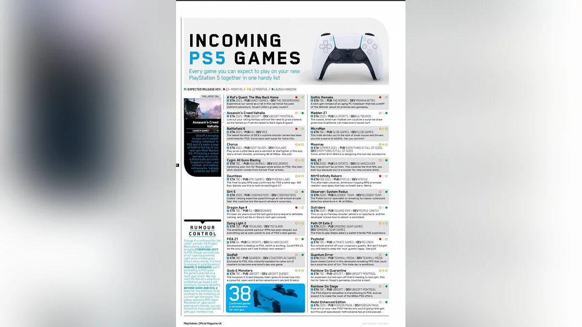 Вчера мы сообщали, что в июньском номере журнала PlayStation: The Official Magazine расскажут о 38 играх для PlayStation 5. Похоже, что в сеть уже слили странички этого выпуска с названиями всех этих игр.