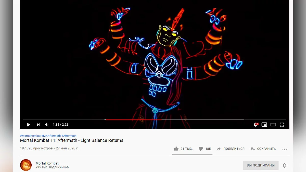 Украинская танцевальная группа Light Balance устроила новое световое шоу, в котором показала неоновые бои в духе Mortal Kombat 11. Ролик появился на официальном YouTube-канале игры и приурочен к недавнему релизу дополнения Aftermath.
