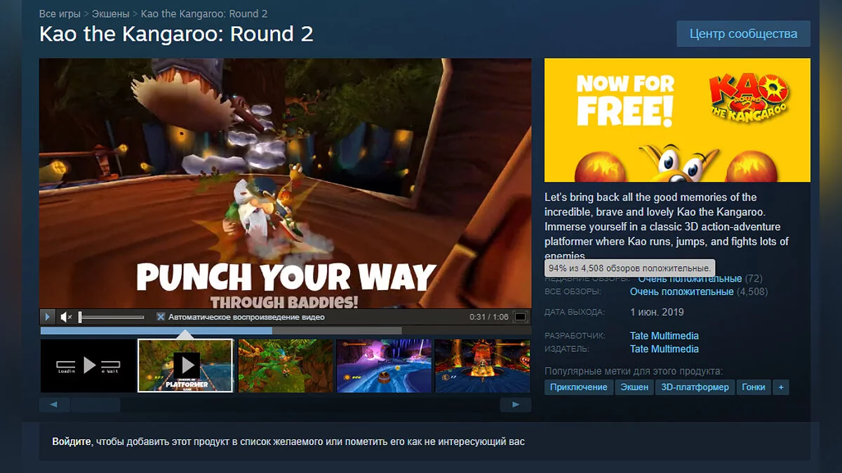 На момент написания новости у Kao the Kangaroo: Round 2 94% положительных отзывов.