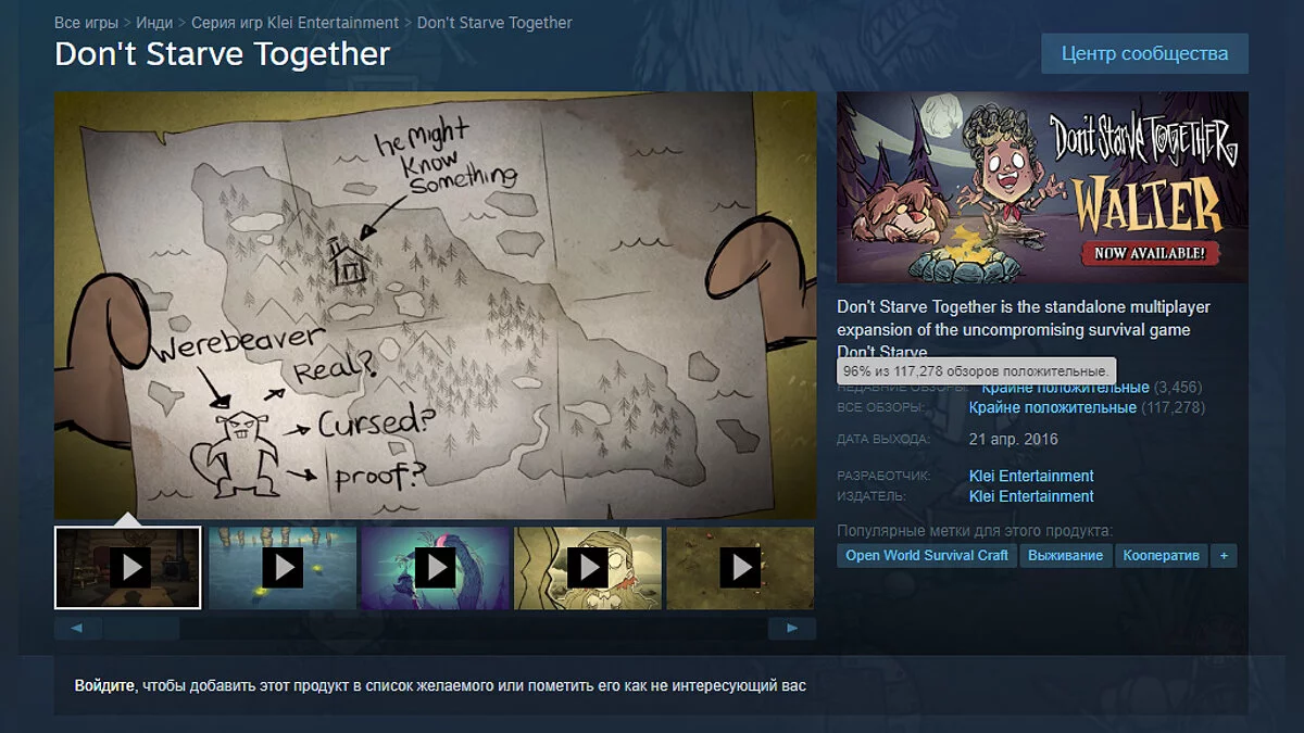 Don't Starve Together вышла в 2016 году и за это время получила свыше сотни тысяч положительных отзывов. Сейчас ее рейтинг составляет 96% в Steam.