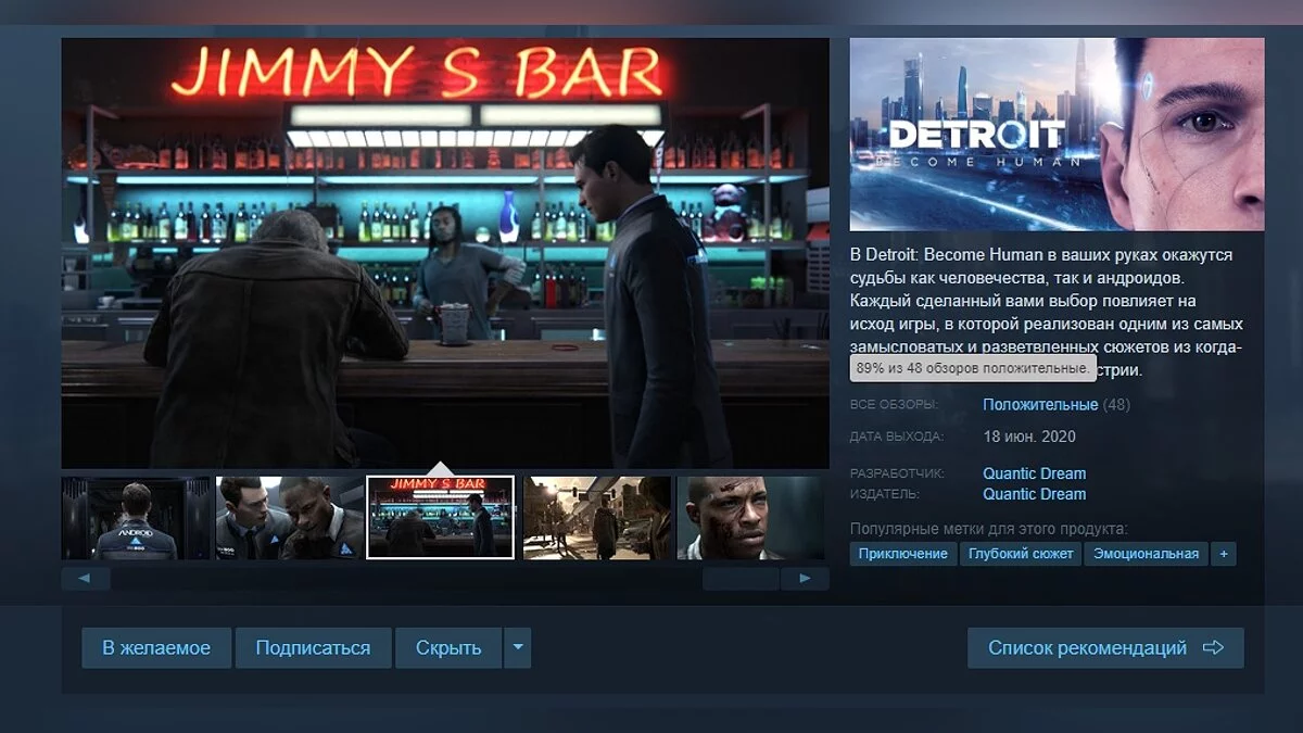 На данный момент Detroit: Become Human имеет 89% положительных отзывов. Если вы еще не проходили игру, советуем прочитать наш обзор.