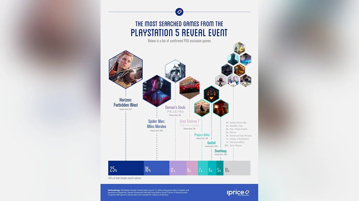Среди консольных эксклюзивов лидирующее место занимает Horizon Forbidden West (25%). Следом идут Marvel's Spider-Man: Miles Morales (18%) и ремейк Demon's Souls (12%). Дебютный геймплей Ghostwire: Tokyo от Синдзи Миками (Shinji Mikami) наоборот, никакого ажиотажа не вызвал — игру «гуглило» всего 3%.