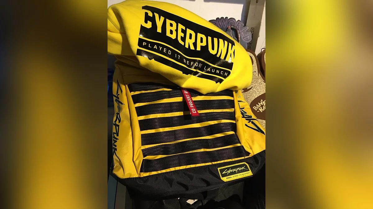 В подарок пресса получила черно-желтый рюкзак и, по всей видимости, толстовку с надписью «Поиграл в Cyberpunk до её выхода».