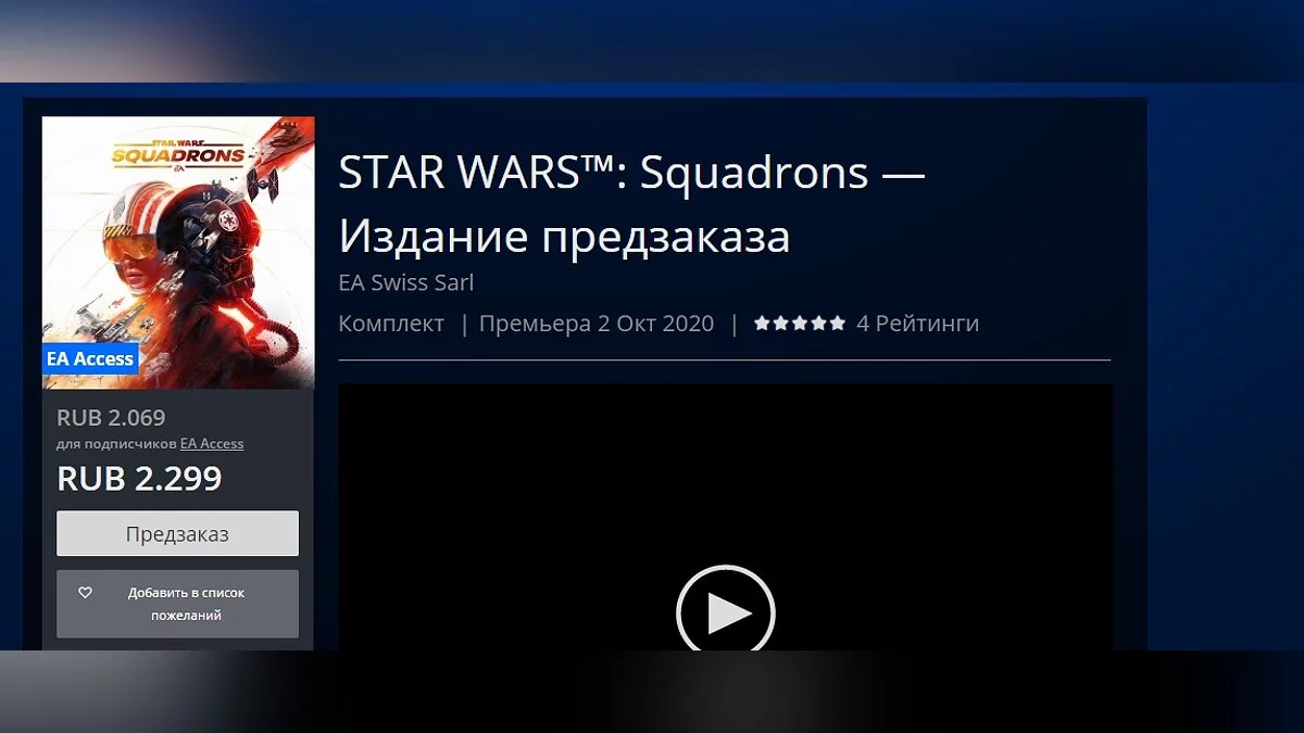 EA открыла предзаказ на Star Wars: Squadrons для PlayStation 4. Цена наверняка обрадует многих владельцев консолей и озадачит адептов ПК-гейминга.