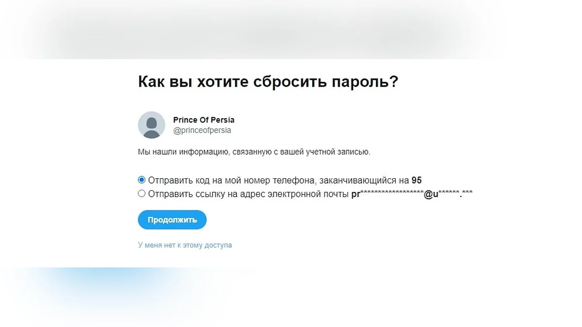 На просторах Twitter найден закрытый аккаунт Prince Of Persia, зарегистрированный в конце мая. Формально подобную учетную запись может создать любой желающий, но есть одно «но»: если попытаться восстановить доступ к аккаунту, система показывает следующую электронную почту: pr******************@u******.***.