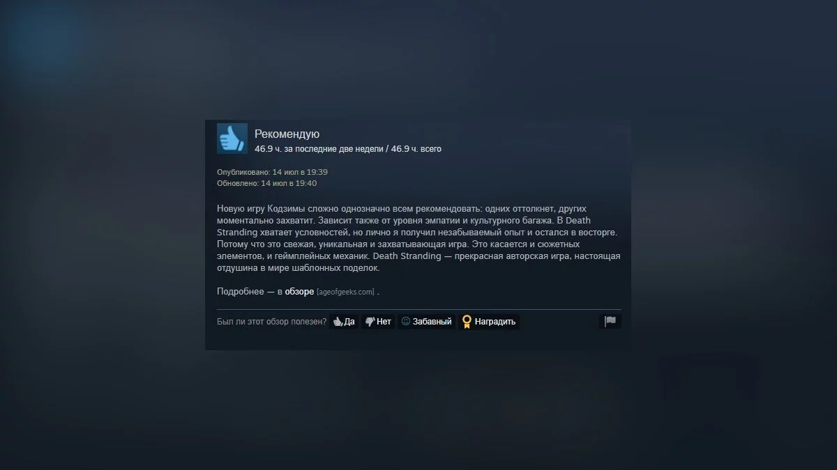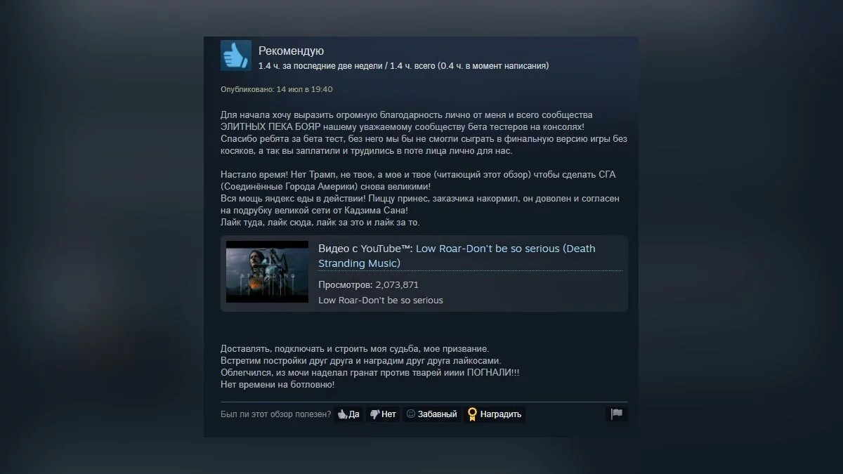 «Как “Ведьмак”, но только играешь за Плотву» — Death Stranding получила отличные отзывы в Steam