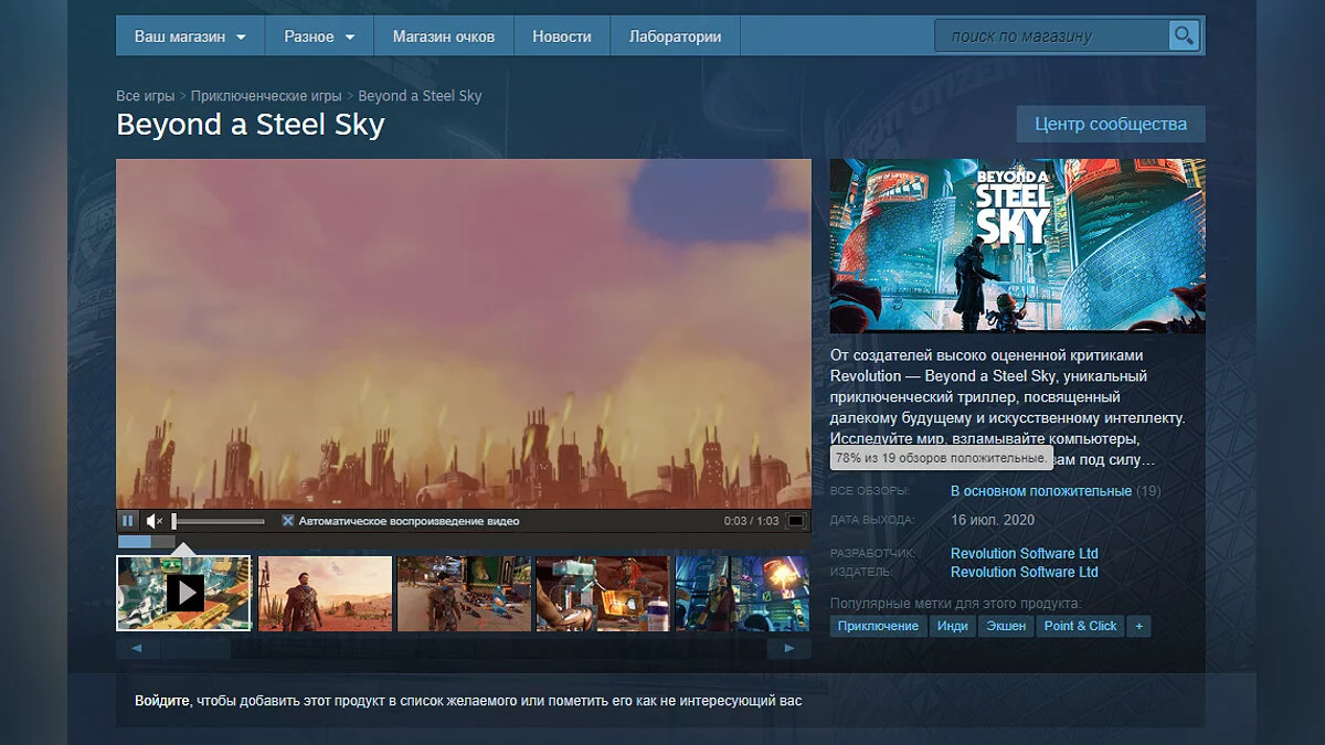 Купить Beyond a Steel Sky в Steam можно со скидкой 20% (действует до 23 июля) за 1199 рублей. Ранее в этом году игра также вышла в Apple Arcade.