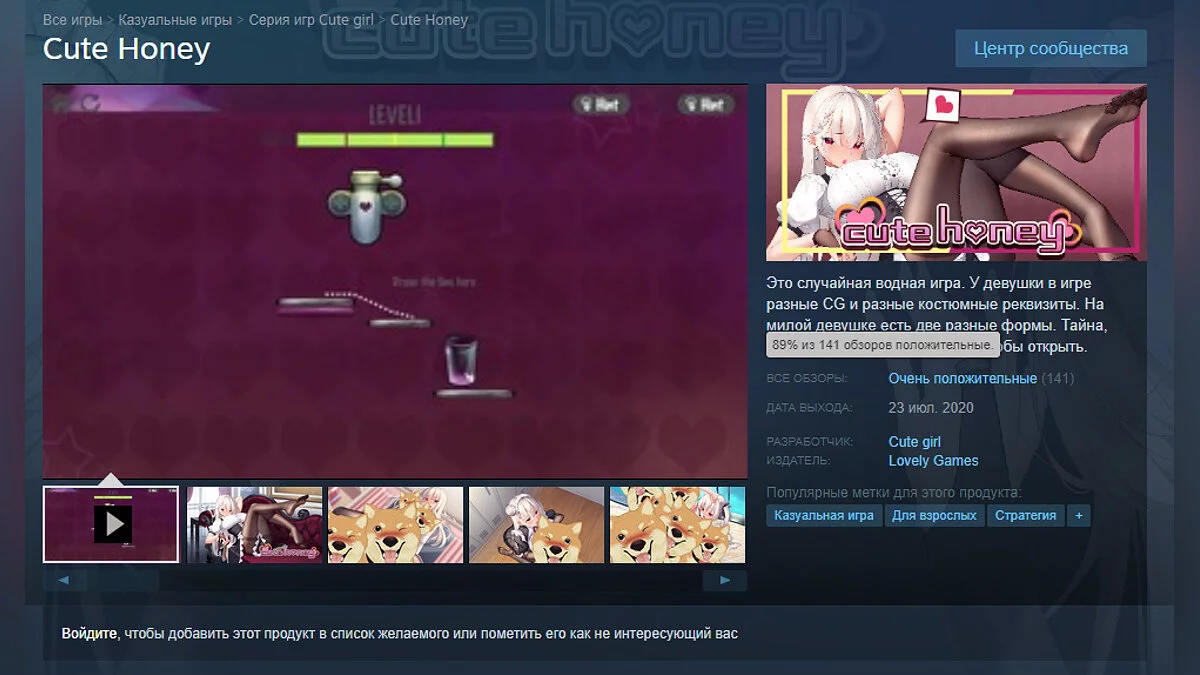 Сегодня в Steam вышла новая игра для любителей «клубнички» — Cute Honey, которая всего за несколько часов получила свыше сотни положительных отзывов. На момент написания новости ее рейтинг составляет 89%.