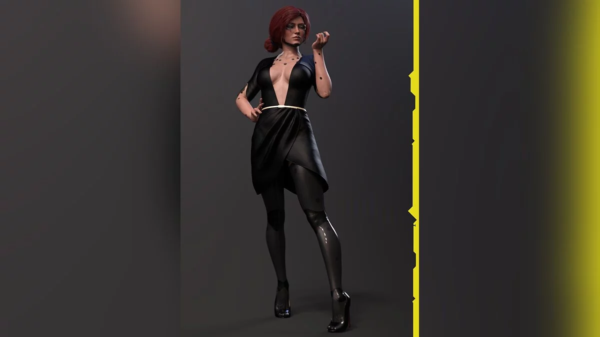 Для Цири художник выбрал историю происхождения главного героя «Дитя улиц». Обновленная героиня обзавелась имплантами: аугментированной правой рукой и имплантами с выдвигающимися когтями на левой. Девушка носит эффектный наряд с золотыми оттенками и вооружена мечом с пистолетом. Классические белые локоны Цири теперь получили розовый цвет.
