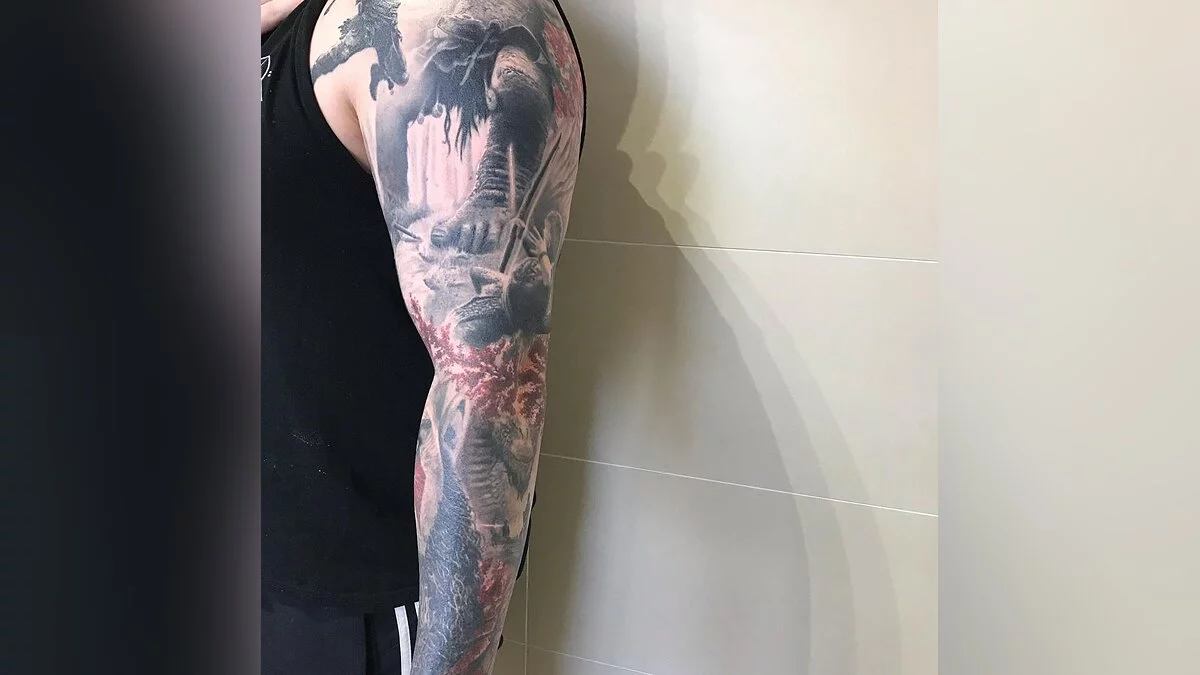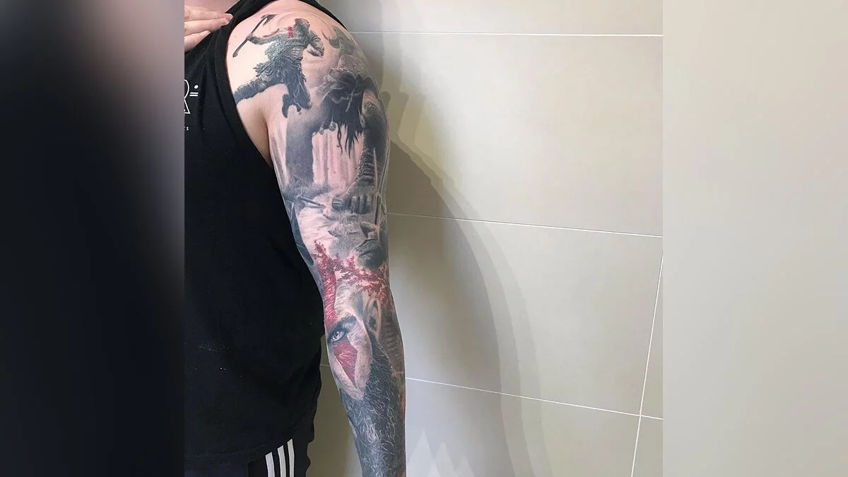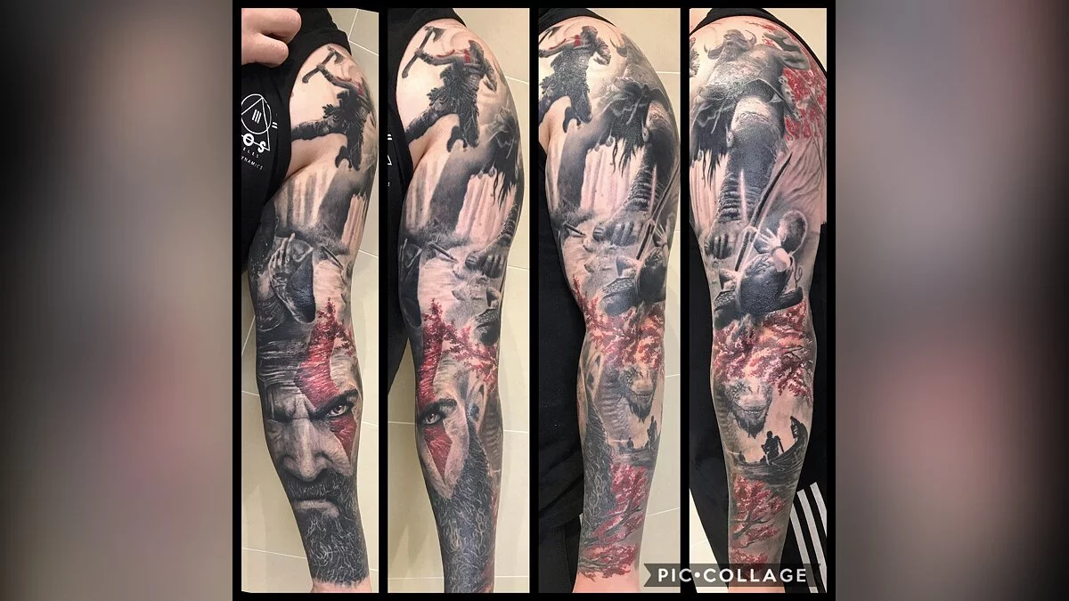 На рукаве можно заметить множество персонажей игры, включая Бальдура с Ёрмунгандом. Владелец татуировки рассказал, что в своё время она помогла пережить ему трудный период в жизни: «Пока эта татуировка медленно росла, то же делал и я».